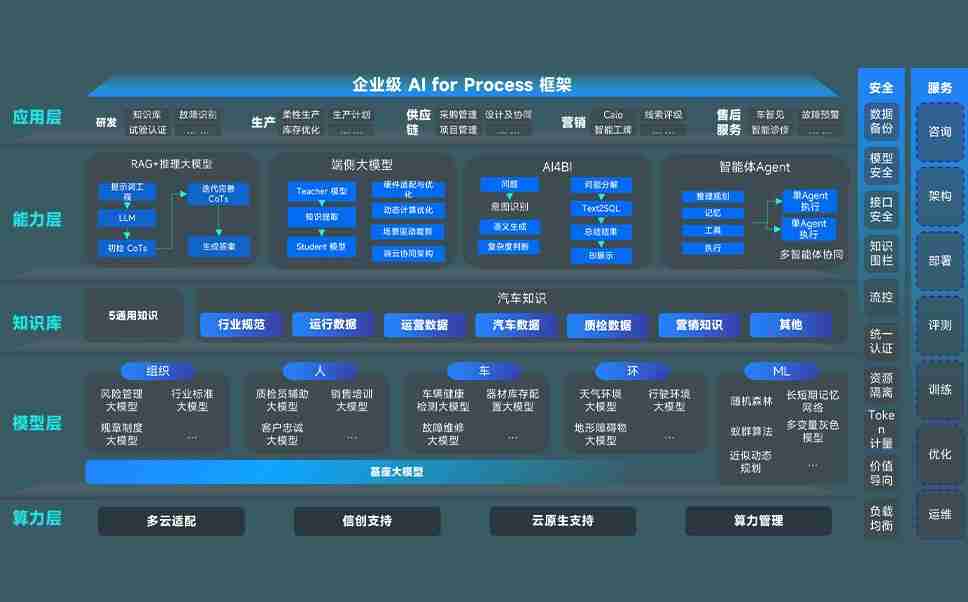 尊龙凯时问学智车解决方案是一套基于AI技术的汽车行业智能化系统,,,覆盖从底层算力到顶层AI应用的全栈方案。。。。方案由算力层、、模型层和应用层组成:算力层,,方案支持多种一体机配置,,,具备云端灵活部署、、、多云适配以及动态优化计算资源的能力;模型层,,尊龙凯时问学平台版提供了企业级AI应用一站式构建与管理平台,,,,支持基于后训练强化技术的汽车企业专属模型的训练、、、、评测和运营;应用层,,尊龙凯时问学DeepSeek版提供包括超级员工、、、、智能招采、、智能营销、、、智能客服、、、AI for BI等一系列解决方案,,,可助力汽车行业实现数字化转型,,,,让管理更智能、、响应更敏捷。。。